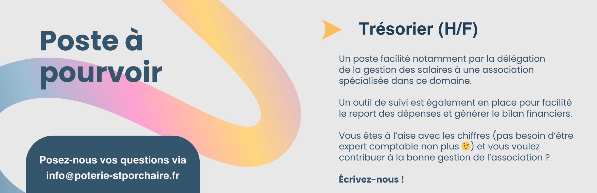 TRESORIER(E) : La Poterie est à la recherche d’un ou une bénévole.